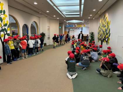 これから半日、館内で色々な体験をさせていただきます。今日は大阪市内からたくさんの学校が来ていて、館内はとても賑わっています。
