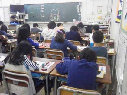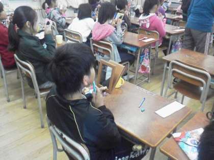 4年生は、歯を虫歯から守るために、歯磨きの大切さや、上手な磨き方を教えてもらい、フッ化物の塗布を行いました。
