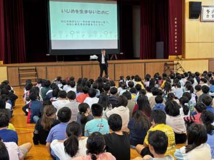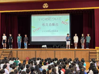 今日はいじめ(いのち)について考える日です。講堂に集まり、全校児童で考えました。児童会代表の子どもたちが学校で起こるいじめについて劇を考え、発表することで全校の子どもたちも日頃の生活をイメージしながら考えることができました。校長先生からも「相手の心を感じとる」ことを大切にしてほしいとお話がありました。教室でもそれぞれの学年でいじめについて真剣に考えてくれたと思います。