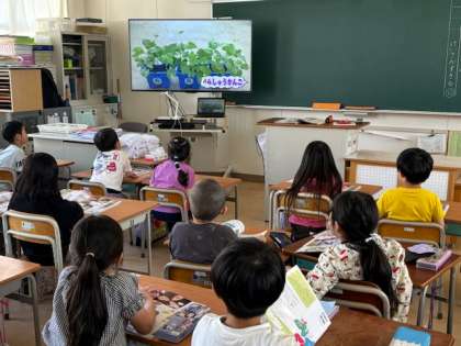1年生は生活科でアサガオの種を植えました。毎日水をやって大切に育てています。今日は、お世話の仕方を学び、成長の様子を観察にいきました。子どもたちの鉢からアサガオの芽が出てきました。これからどんどん大きく成長していくと思います。