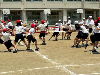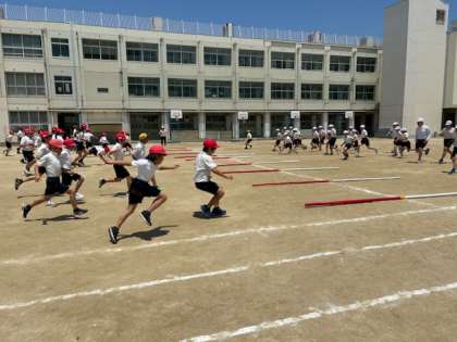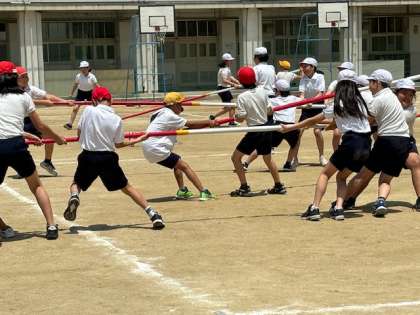5年生は体育科で運動会に向けて練習しています。今日は棒引きの練習でした。子どもたちも置いてある棒に向かって勢いよく走って行きます。ルールを守り、フェアプレイで頑張っています。さぁ、本番ではどんな結果になるでしょうか。