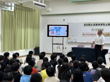 5年生は梅田少年サポートセンター方に来ていただき、非行防止教室を行いました。非行についてペープサートで分かりやすく説明していただきました。自分がしてはいけないことはもちろんですが、友だちと一緒に声をかけあえるようになってほしいです。どんな話だったか、家でも話を聞いてあげてください。