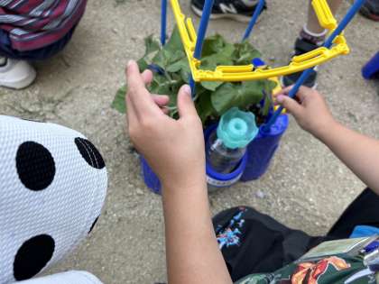 子ども達が毎日大切にお世話をして育てているアサガオが大きくなってきました。