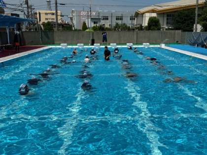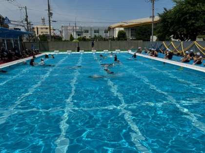 今日は天候も良く、プールでの学習はとても気持ちよかったです。中学年は水慣れをしてからプールを横向きに泳いでいます。一年ぶりにプールに入った子どもたちも多く、久しぶりのプールにテンションが上がっています。落ち着いて安全に学習できるように支援していきます。