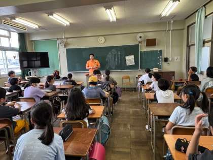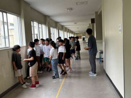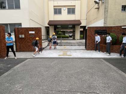 今日は6年生が2回目の中学校登校日です。朝から中学校の校舎に登校しました。6年生も少し照れくさそうに中学校の正門を通っていきます。3時間目まで中学校の校舎で学習します。