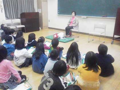盲導犬・聴導犬・介助犬をあわせて補助犬ということや、これらの犬はどのようなお店にも一緒に入ることができ、乗り物にも一緒に乗ることができるようになっていることなど、たくさんの知らなかったことを教えてもらいました。犬のかわいらしさに気を取られながらも、集中していきいきと話を聞き、問いかけに答える子どもたちでした。
