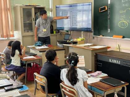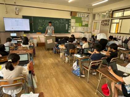 3年生は社会科で淡路商店街へ社会見学に行く計画を立てています。タブレットでお店について調べ、自分がどのお店にインタビューしたいか、どんなことを教えてほしいか考えています。行ったことのあるお店もあって、子どもたちも見学を楽しみにしています。