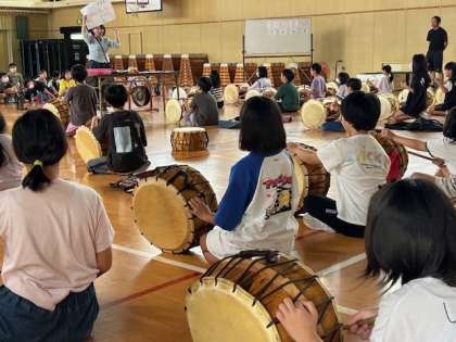 4年生は、ソンセンニムから韓国朝鮮の民族楽器についで学びました。音が大きく激しい印象のクェングァリは雷、抱擁力のある音色のチンは風、空に鳴り響く力強いプクは雲、そしてチャンゴは雨を象徴しています。今日は楽器を演奏することを通して韓国朝鮮の文化に触れることができました。