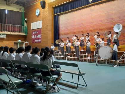 6年生は朝から淡路中学校へ登校し、文化祭を鑑賞させていただきました。中学生が舞台に立ち合唱や学習の発表を行うと、子どもたちも真剣にみて楽しんでいました。来年はこの舞台に立つ子どもたちです。どんなことを感じたでしょうか。