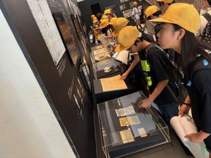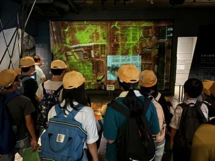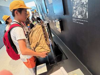 ピース大阪では、映像で資料を説明してくれる場所もあり、子どもたちは映像を見ながら学習しています。学校で学習したことも見つけ、「これ知ってる!」とグループで伝え合いながら見学しました。今の大阪の姿とはかけ離れた当時の様子を見て、子どもたちは何を感じたでしょうか。