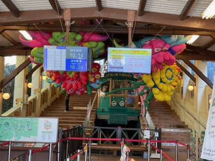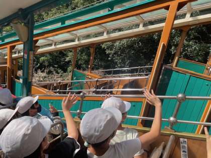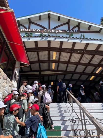 5年生はケーブルカー乗り場に着きました。これから六甲山を登っていきます。自然豊かな景色を楽しみながら。