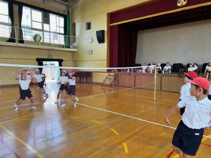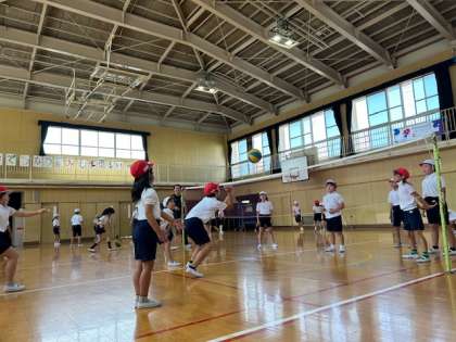 4年生は体育でキャッチバレーボールを学習しています。通常のバレールールのキャッチバージョンです。点を入れたい!という気持ちを抑えつつ、みんなに上手くボールを回して行きます。相手チームに返す時はネットのギリギリラインや隙間をねらうなど、チームでよく考えてプレイし大盛り上がりの4年生でした。