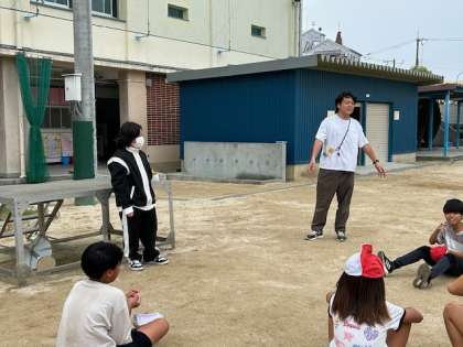 今日は東淀川支援学校のお友だちが交流に来てくれました。これまでも毎年交流を重ねていますが、始めはお互いに緊張しながらのスタート。ティーベースボールやふえおにをすると笑顔が見られました。最後は聞きたかったことを伝え合い楽しい時間となりました。また来てくださいね。