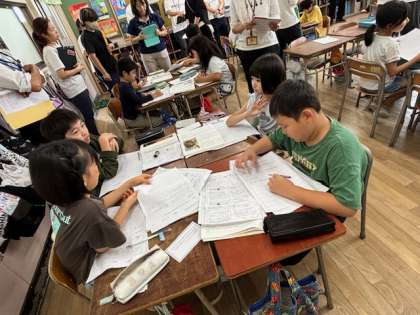 3年生は国語科の授業を頑張っています。今日は先生方も見学に来ています。登場人物にむけてお手紙を書く授業です。どの子もしっかり教科書を読んで、友だちと伝え合っています。この後、先生も授業について話合いをします。