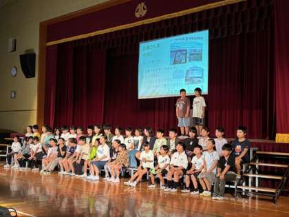 今日は学習発表会のリハーサルとして、全校で各学年の発表を鑑賞しました。1.2年生は歌を交えて元気に発表しています。3.年生は社会見学で学んだことをスライドに合わせて発表します。4年生は総合の時間に学習したことを歌や和太鼓で表現します。5年生は世界の様々な国について、6年生は平和学習で学んだことを発表します。