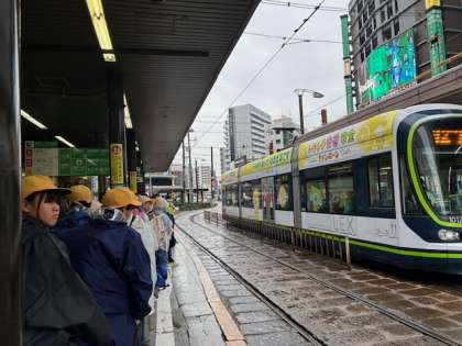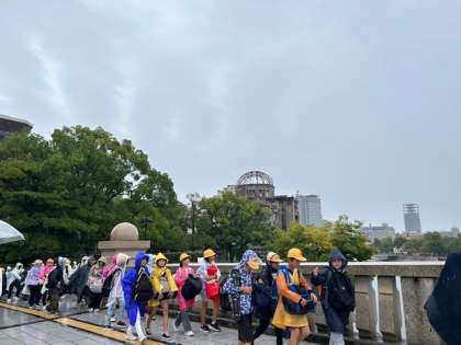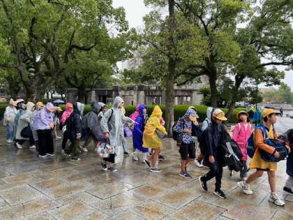 6年生は平和記念公園に着きました。原爆ドームを見学し、これから平和集会を行います。雨が降っているようですが、しっかり折り鶴を届けてほしいと思います。