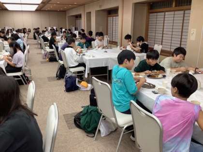 6年生は広島でいただく最後の昼食です。みんなお買い物に満足した顔で食べています。この後広島駅まで戻り、新幹線に乗車します。予定通りの時間で進むと思われますので、新大阪駅着が16時30分ごろ、学校到着は17時ごろになる予定です。変更がある場合は、ミマモルメでメールを送信いたします。