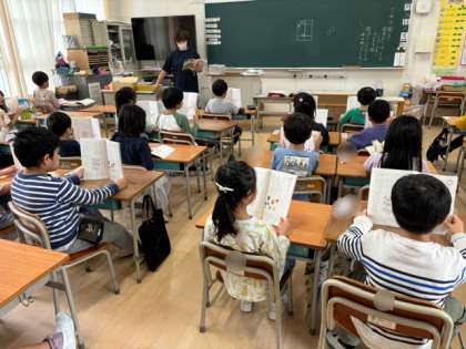 1年生は声をそろえて音読しています。今日は読み方が変わる、曜日や日付について学習しています。「ついたち、ふつか、みっか、、」覚えることがたくさんあります。お家でもすらすら読めるように練習してくださいね。