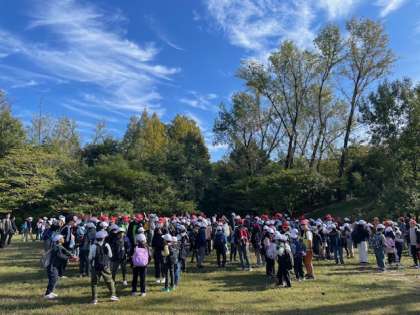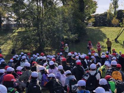 今日はたてわり遠足で千里北公園に来ています。少し肌寒いですが、いい天気です。これからたてわり班に分かれてオリエンテーリングをはじめます。地図を持って子どもたちだけでポイントを回ります。ポイントでは先生たちからミッションがでます。みんなで協力して頑張りましょう。