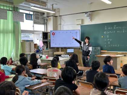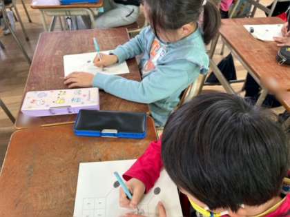 2年生は、ことばの教室の先生と目・指・耳のトレーニング方法を学習しました。聞いた数字を目で追うのですが、頭を動かさずに目だけを動かしながら見つけていきます。このようなトレーニングを重ねこれから授業に役立つ力を少しずつ身につけてほしいと思います。