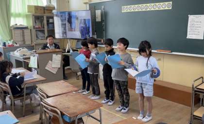 2年生は生活科で学習した「まちたんけん」についての発表です。これまで様々な施設に訪問させて頂きました。自分たちが見つけたことや気になったこと、質問したことをまとめみんなに伝えることができました。