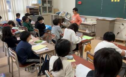 2組は国語科で自分の思い出に残っている事を出来事と気持ちに分けて発表しました。友だちの発表をしっかり聞く子どもたちも素敵でした。
