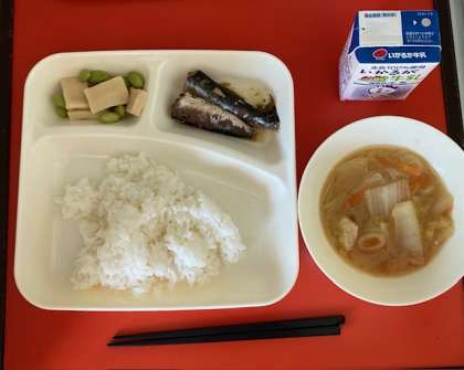 いわしには、主に体をつくる元になるタンパク質やカルシウム、鉄分などが多く含まれています。今日はいわしのしょうが煮にしています。