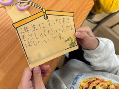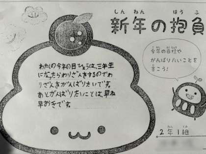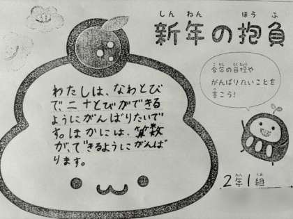低学年も新年の抱負を書いています。どんな目標を書いたのでしょうか。目標に向かって努力できる1年にしてほしいです。ご家族でもどんな目標を立てたのかお話してみてください。