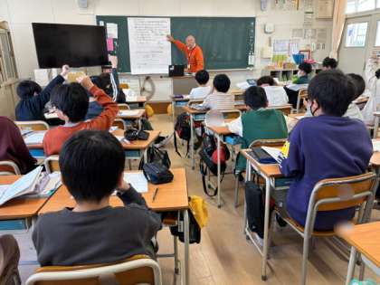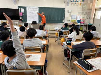 5年生は割合を求める学習をしています。5年生の学習の中で、特に子どもたちが難しいと感じる単元です。もとにする量やくらべる量を見つけて立式します。計算した割合を百分率で表すことも学習します。家でもしっかり復習してほしいです。