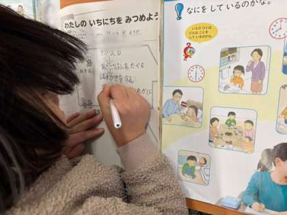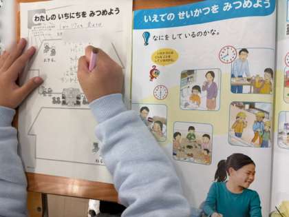 1年生は1日の生活を振り返る学習をしています。寝る時刻や起きる時刻、起きてからは何をしているかな?自分の生活をワークシートに書いていきます。規則正しく生活できているでしょうか。先日の授業アンケートでもゲームやスマートフォンをさわる時間が多くなっていました。ご家族でもお子さんの生活について振り返ってみてくださいね。