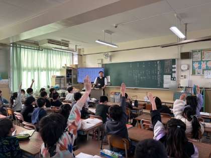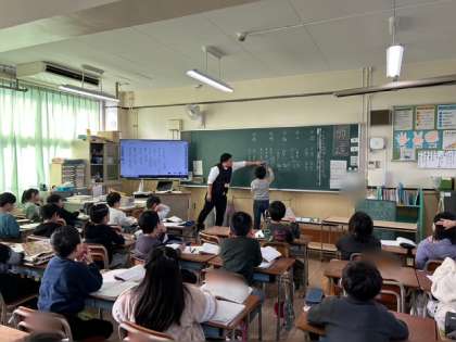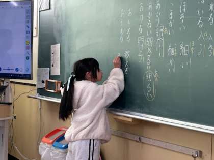 2年生は漢字の「読み」と「送りがな」を学習しています。いくつかの漢字からことばによってちがう読み方をすることに気づき、たくさんのお友だちが手をあげて発表することができました。