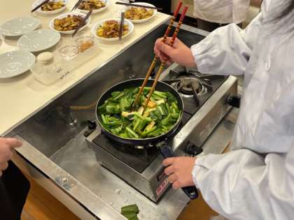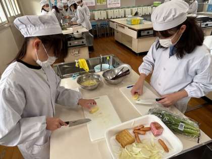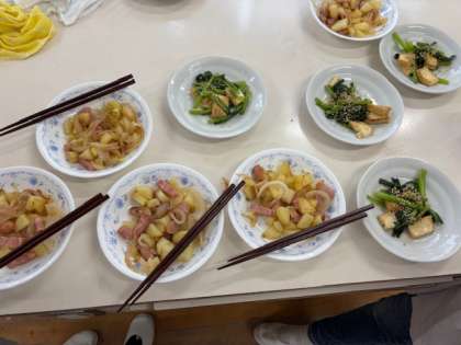 6年生は家庭科室で調理実習です。今日はジャーマンポテト、小松菜と厚揚げの炒めものを作っています。6年生は何度も調理実習してきたので、とても手際良く調理しています。「先生も食べるー?」と気さくに声をかけてくれるのも6年生のいいところです。