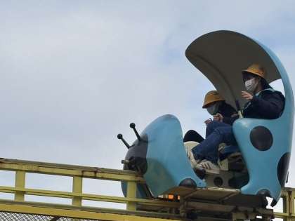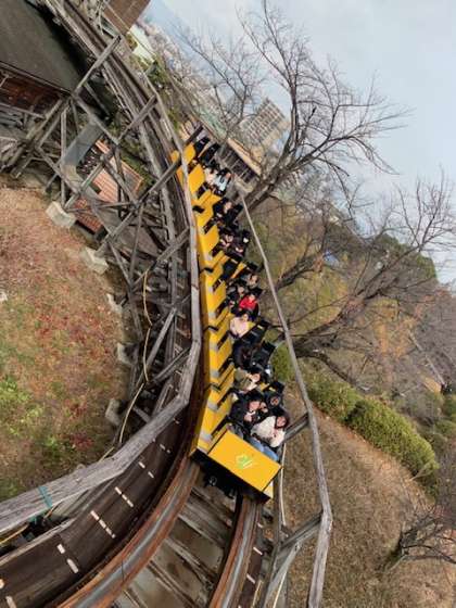 アトラクションにドンドン並んでいます。平日なので少し空いているようです。たくさん乗って楽しんでいます。