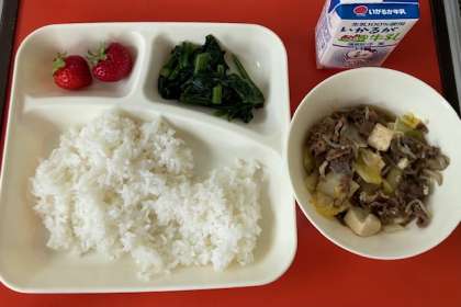 とうふは、大豆から作られています。まず、水につけた大豆をすりつぶしてしぼり、豆乳を作ります。その豆乳に、固めるもとになる「にがり」を加え、豆腐が出来上がります。