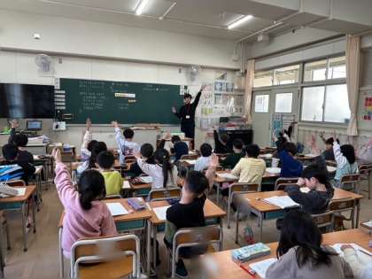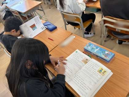 今日の算数では文章問題を中心に学習しました。文章中の言葉をさがし、たし算かひき算かを考えます。問題を読んでみると、「〇〇さんは何番目にいて、そのうしろに…みんなで何人いますか。」や、「〜より少なかったそうです。〇〇は何個でしょうか。」と書いてありました。みんなで、図を書き、数えやすいように目印となる部分に色をつけて数えることができました。
