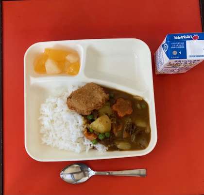 今日の給食は、みなさんが小学生になったお祝いの献立です。