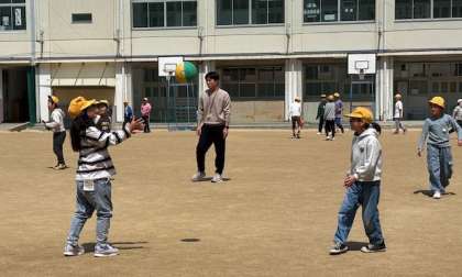 今日もいいお天気です。休み時間には新しいクラスの友だち、先生と元気に遊ぶ姿が見られました。