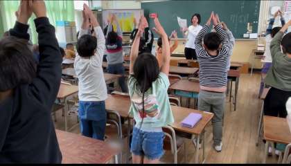 2年生は「たけのこぐん」という詩を学習しています。たけのこが土の中から少しずつ伸びてくる様子を体で表現しています。校内の竹林でも、新しいたけのこが伸びはじめています。これからあっという間にグングン伸びていきます。子どもたちもグングン成長してほしいです。