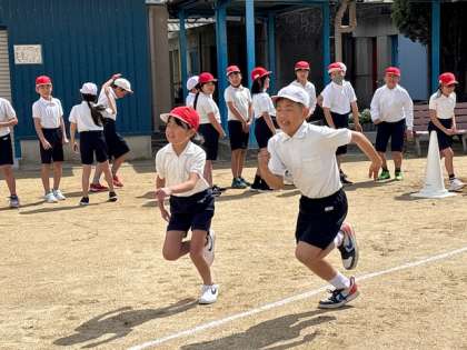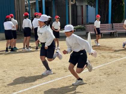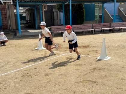 5年生は運動場で50M走をしています。5年生はいつも元気に体を動かしています。体も大きくなり、走る姿も逞しくなってきました。
