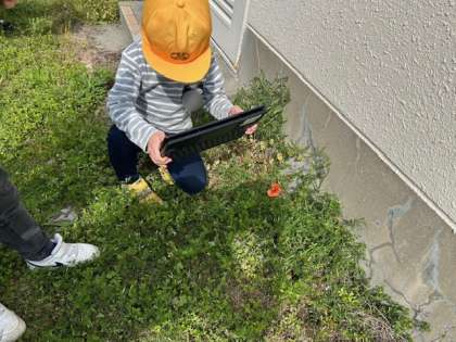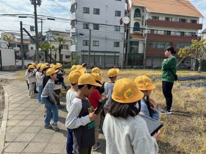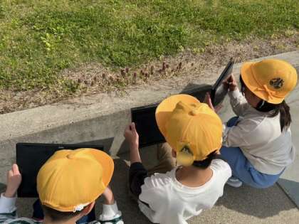 今日は春の自然観察に淡路中学校の校舎に出かけました。広い学習園で植物や昆虫を観察しました。隣の校舎ですが小学校では見られない植物がたくさんあります。タブレットで写真を撮影して観察しています。