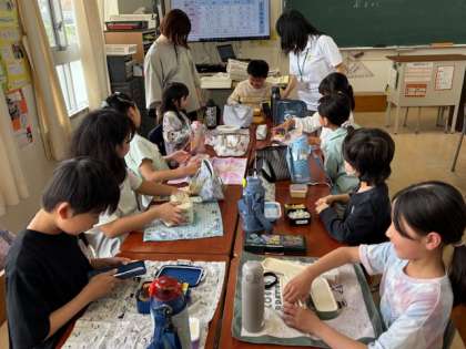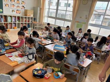 1年生と4年生は教室でお弁当をいただきました。子どもたちは嬉しそうにしています。「延期になったからお弁当2回食べれてラッキー」と子どもたちは喜んでいます。作る方は大変ですが、子どもたちの笑顔のために、次回もよろしくお願いします。