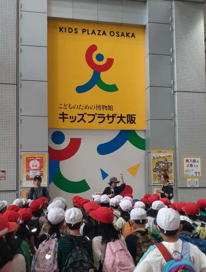 楽しみにしていた遠足です。天神橋筋商店街を歩いて、目的地「キッズプラザ大阪」に着きました。ワクワクドキドキです。