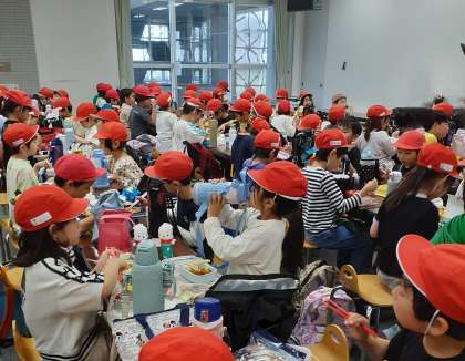 お弁当をみんなで食べました。雨模様なので、公園ではなく屋内になったのは、残念でしたが、おいしくいただきました。