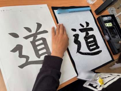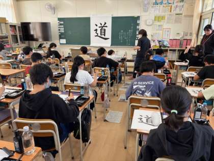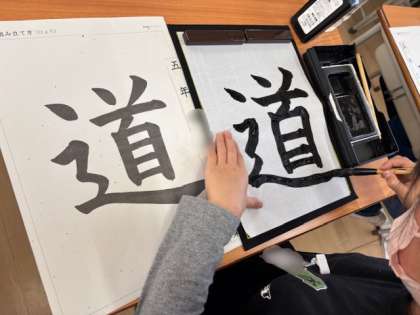 5年生は書写の時間です。今日は道という字に挑戦しています。バランスの難しい文字ですが、お手本をよく見ながら丁寧に書いています。高学年になって筆の使い方も上手になってきました。