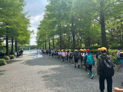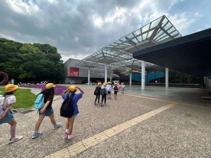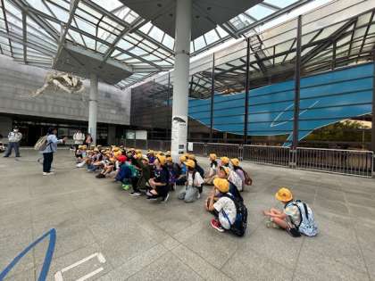 今日はお天気も良く楽しみにしていた遠足に行くことができました。長居自然史博物館に到着し、さっそく大きなクジラたちの標本に驚く子どもたち。博物館の回り方を聞き今から見学開始です。