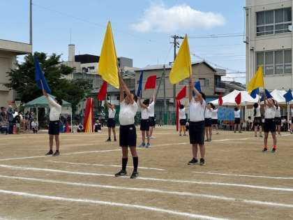 6年生は最後の運動会の日を迎えました。競技や演技だけではなく、係の役割、会場の準備や片付けまでしっかりやり遂げてくれました。綱引きやリレーも、6年生が出てくると迫力があり、応援も熱くなります。フラッグも力強く振り、きれいな演技を見せてくれました。これから卒業まで学年の仲間とたくさんの思い出を作ってほしいです。
