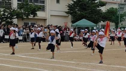 1年生と協力した団体演技「舞台に立って、笑顔のダンス!」では、やっぱりカワイイ、笑顔いっぱいの姿を見せてくれました。1年生と比べると、少しだけお兄さんお姉さんに見えるところも素敵でした。