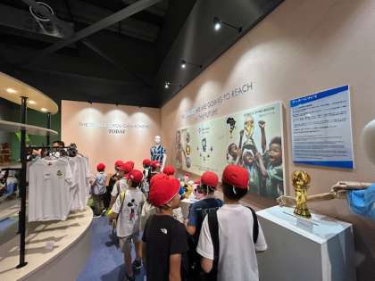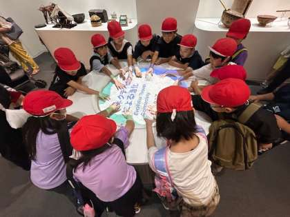 子どもたちが聞き慣れない名前の国をたくさん知ることができています。スタッフの方にも元気よくあいさつしています。「ジャンボー!!」さぁどこの国でしょうか??