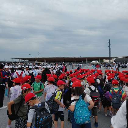 先生たちは「オレンジのゼッケン」で目印になっています。