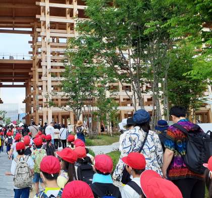 万博会場に着きました。たくさんの人でいっぱいです。